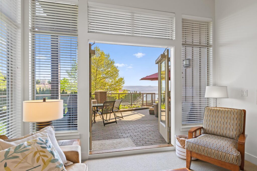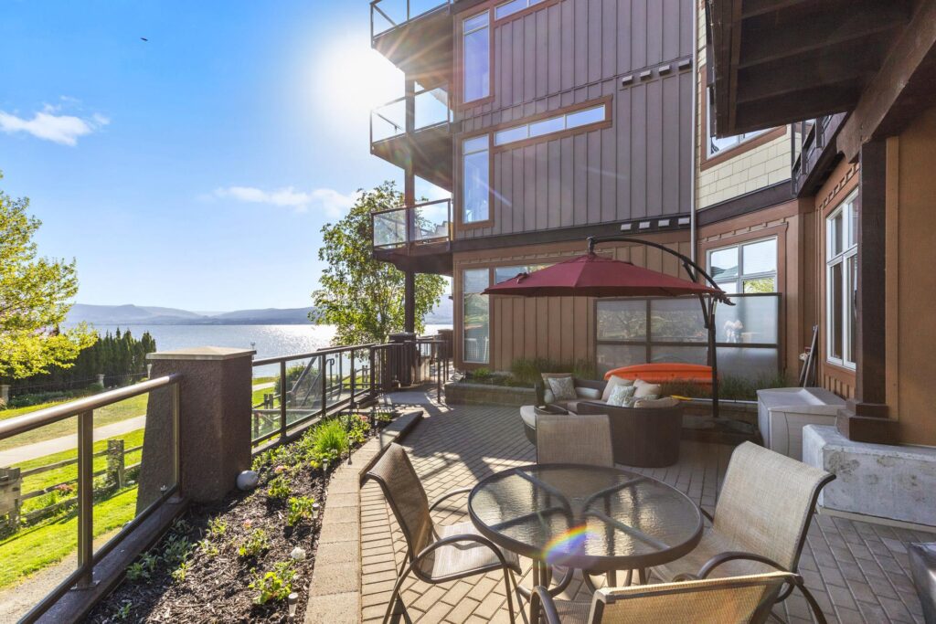Welcome to paradise at The COVE LAKESIDE RESORT! Desirable elevated ground floor suite just steps from the lake that rarely comes available. Superb 2bed/2 bath over 1100 sqft with a unique 400+ sqft of PATIO SPACE staring right out to the lake, perfect for BBQing and entertaining. Quiet side of the building offering morning sun while enjoying a coffee and shade for cooler evenings after hot days at the pool or the beach. Gorgeous suite features split bedroom plan, soaring 11′ high ceilings in the living, dining & bedrooms, making it feel uplifting & bright with natural light. Granite kitchen has a wine fridge, a newer dishwasher and a microwave. Relax & enjoy the Okanagan lifestyle to its fullest! Amenities Include: 600 feet of pristine waterfront on 6.5 acres of resort grounds, 2 outdoor pools & two hot tubs, putting green & tennis courts, gym, theatre, and owners lounge -Fine dining restaurant on-site and surrounded by world-class wineries, hiking & outdoor adventure. Whether you need an affordable lakefront residence or a high-end investment property, this is your chance to own a piece of Okanagan paradise. Never been rented (NO GST) but comes Turn-key, fully furnished, ready to move in and enjoy. This unit is only one of a few where you can short-term rent on your own or participate in the professionally managed rental pool, giving you an opportunity to generate revenue and use for your own enjoyment. Comes with 1 underground parking spot plus a storage locker close to the unit.