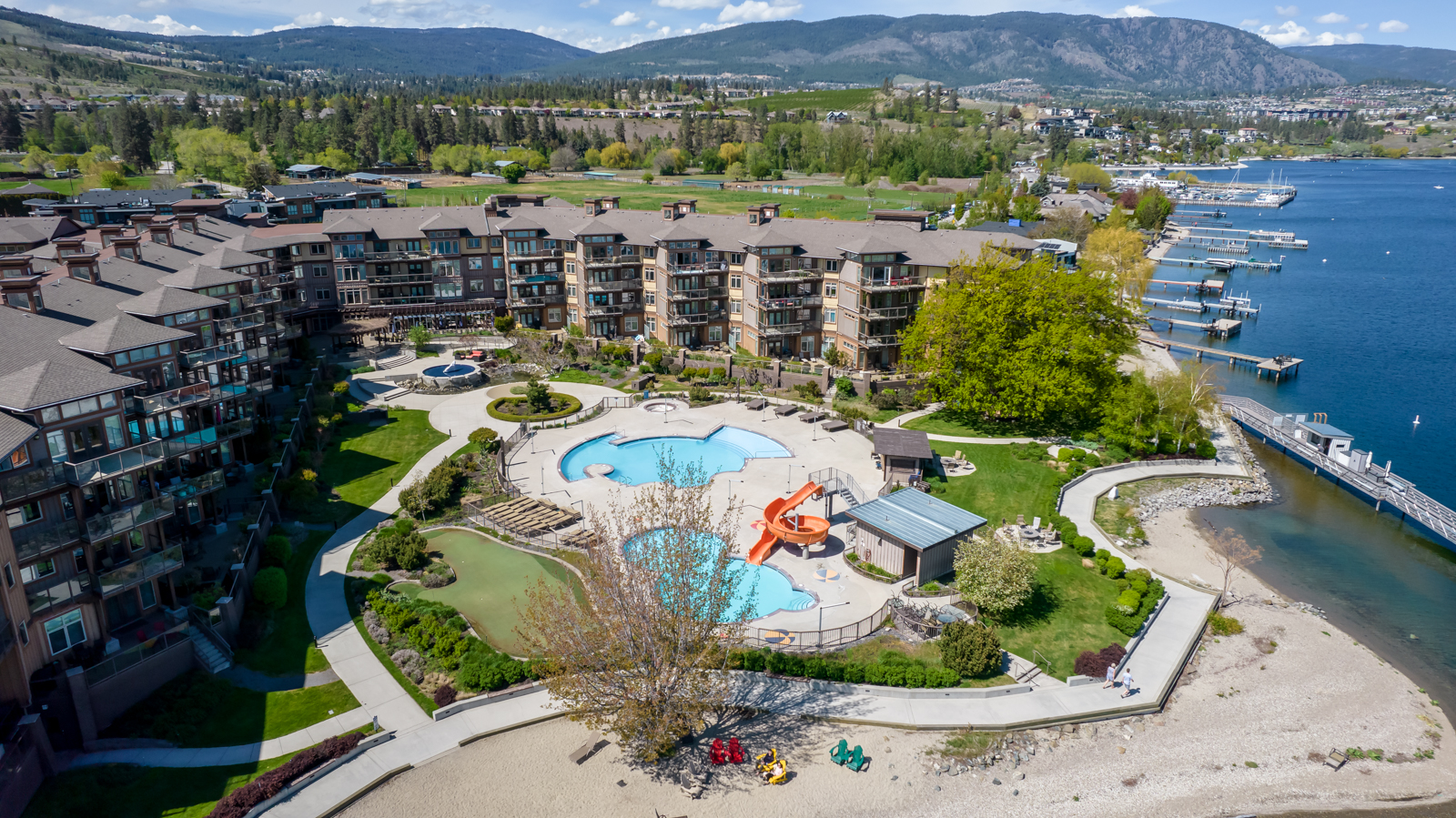RARE AirBNB-Ready LAKE VIEW OPPORTUNITY AT THE COVE! This is one of the few suites at The Cove Lakeside Resort and 1 OF 4 RESORTS IN WEST KELOWNA that allows full Airbnb / self-management, giving you complete flexibility and incredible revenue potential. Suite 319 sits in a SOUGHT-AFTER location overlooking the POOL, MARINA, and OKANAGAN LAKE, offering great sun exposure and the perfect vantage point to keep an eye on the family enjoying the amenities. This immaculate 2-bed, 2-bath, SPLIT BEDROOM plan is FULLY FURNISHED and truly TURNKEY—stylish decor, linens, kitchenware, and appliances are all included. Whether you’re looking for a personal retreat, full-time living, or a great investment, this suite delivers. Similar self-managed units in the resort rent for up to $750/night, making this an exceptional income generator. Enjoy a 9′ x 24′ covered balcony, geothermal heating/cooling included in strata fee, secure underground parkade for 1 vehicle, storage for bikes, personal storage locker, spot for your paddle board, and access to 2 pools, 2 hot tubs, sandy beach, MARINA, community park, spa, the Landing Restaurant, wineries, LAKE, boating, tennis, golf & more. A rare chance to own a fully equipped, Airbnb-ready suite in one of the Okanagan’s most desirable waterfront resorts—use it, rent it, or do both. Opportunities like this don’t come often! OPTIONAL rental management is available through the hotel.